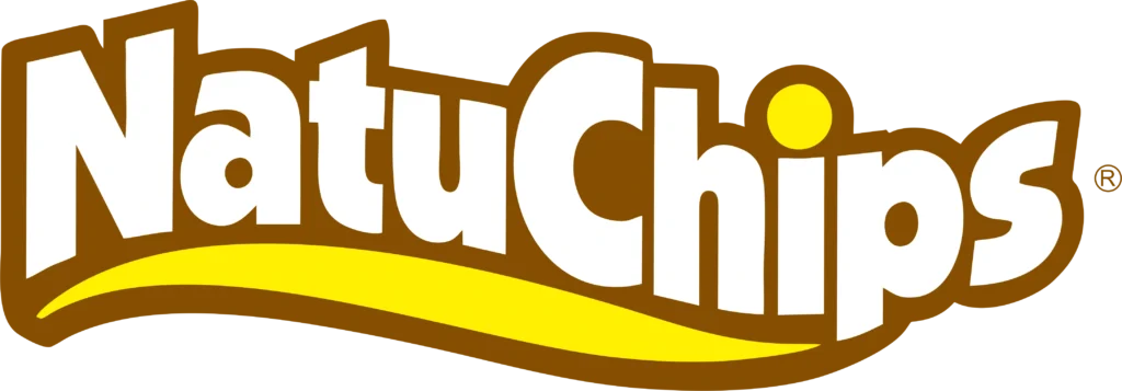 • Logotipo horizontal “NatuChips” en blanco sobre banda amarilla con bordes marrones, bastante friendly, pero más genérico.